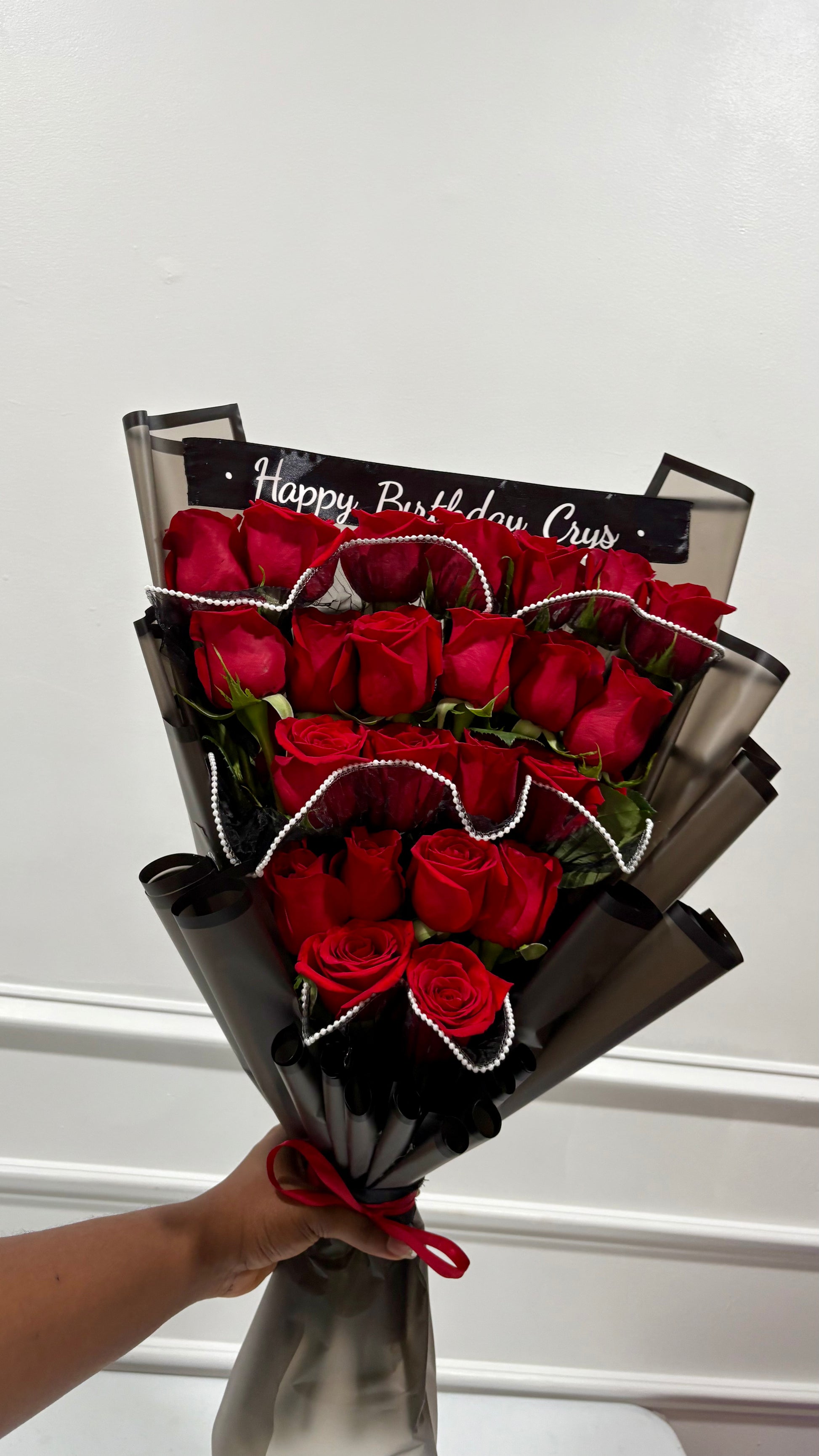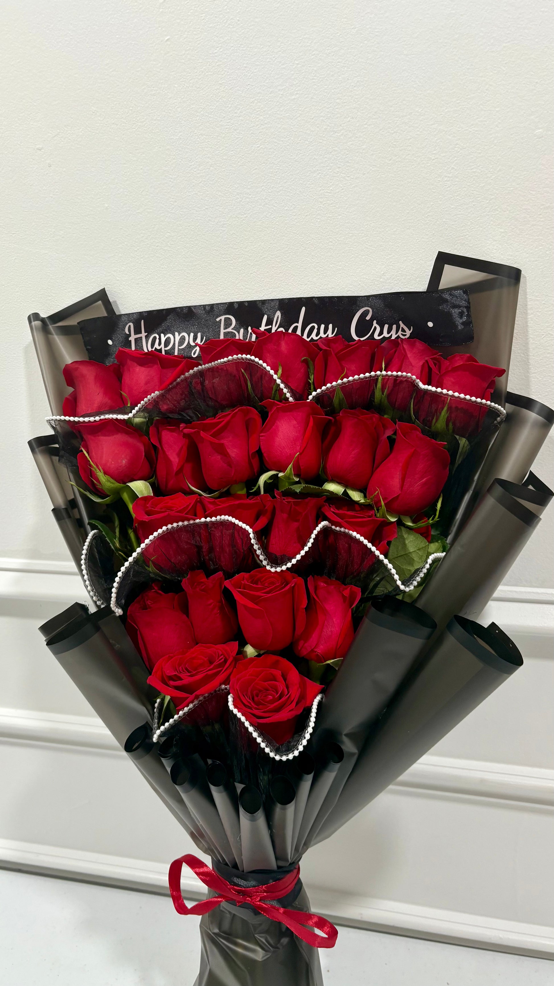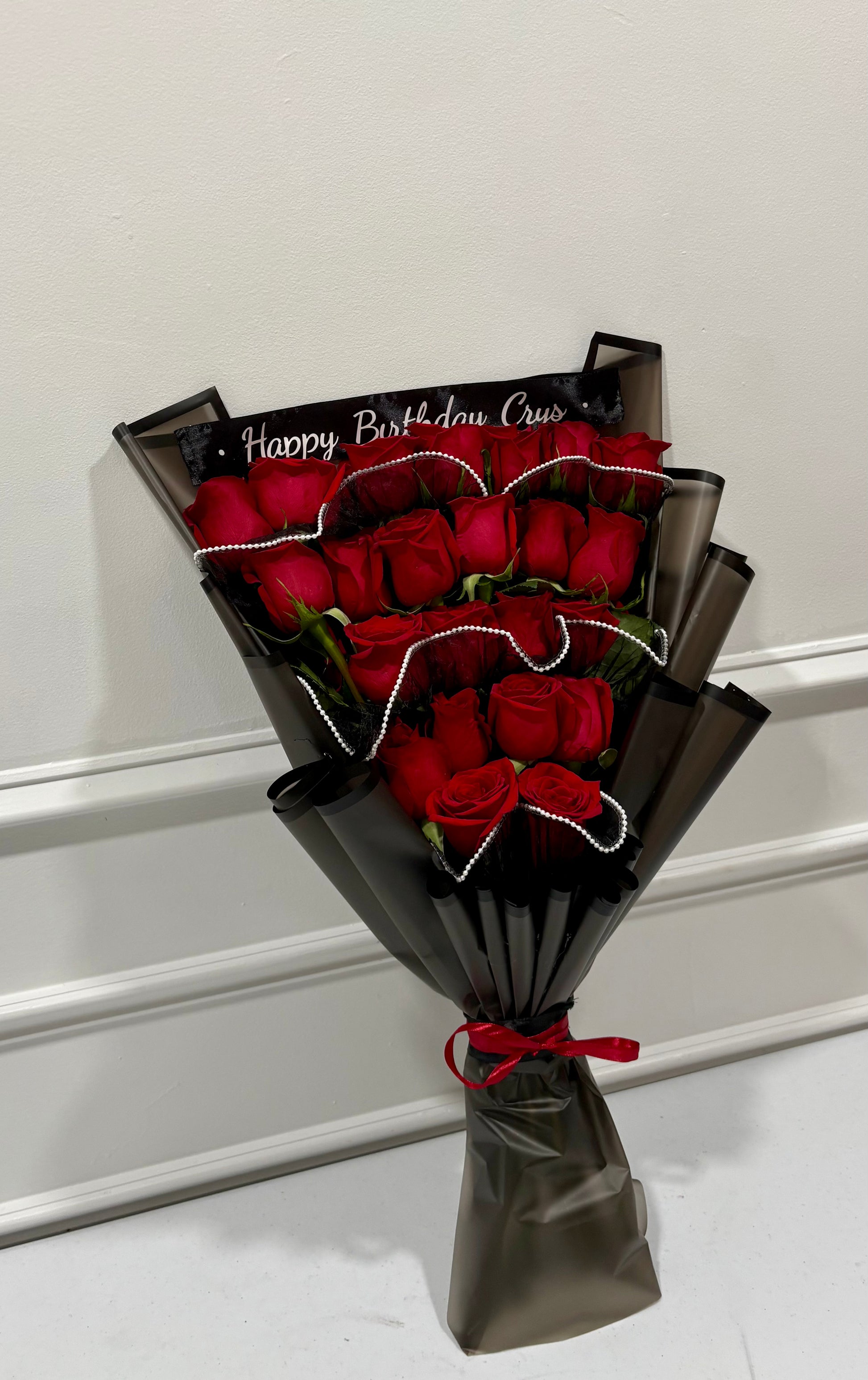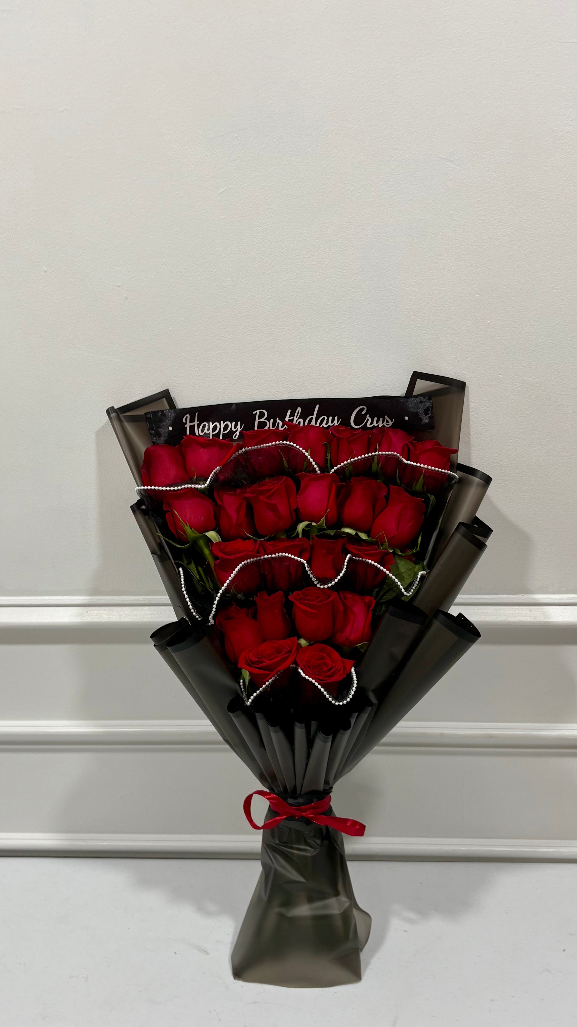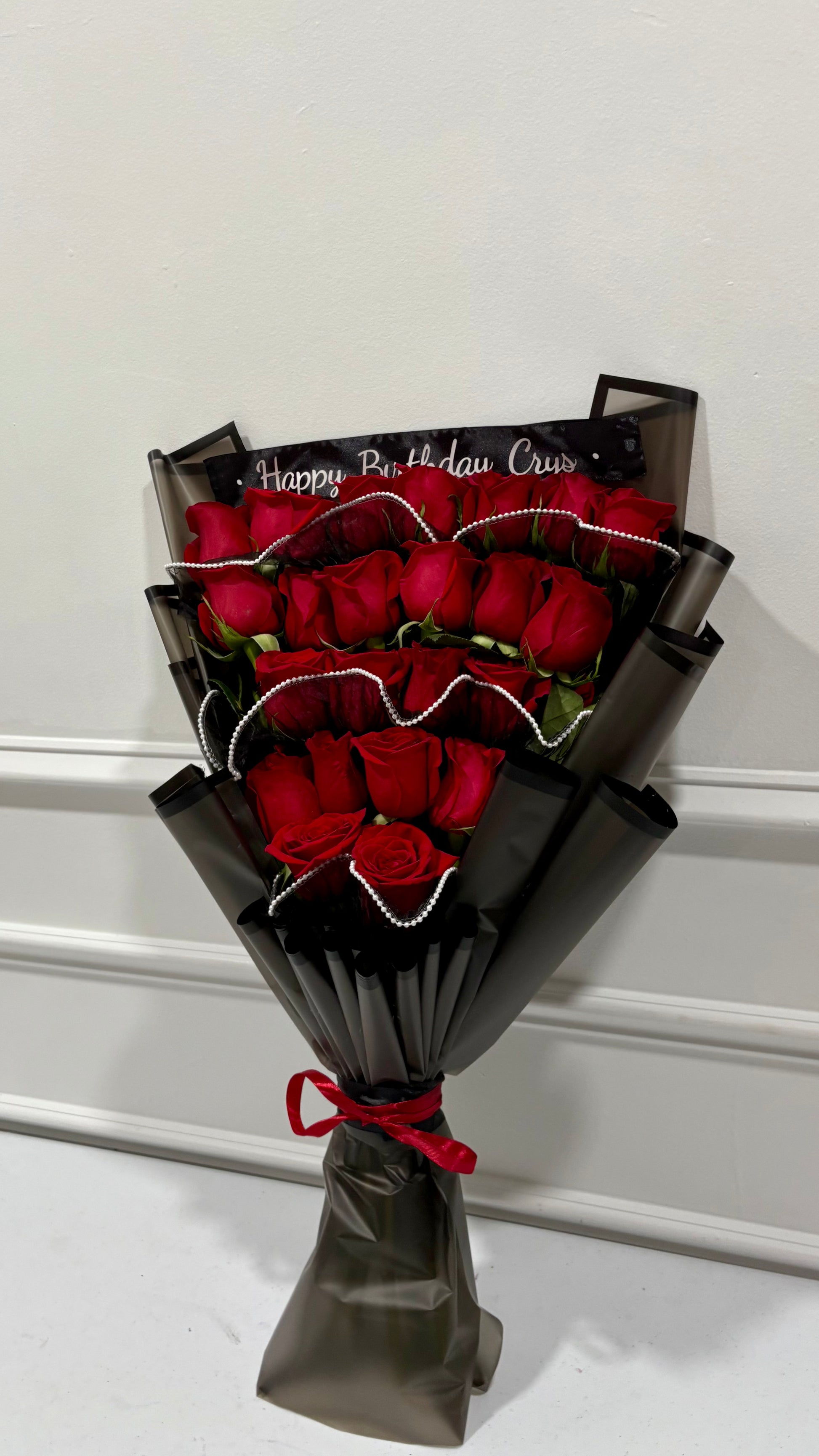 This stunning flat bouquet features 24 vibrant roses arranged with elegance and care. Perfect for making a bold statement, it delivers a lush, abundant look while maintaining a modern, streamlined silhouette. Ideal for expressing heartfelt emotions or brightening any special occasion, this bouquet offers impressive beauty and freshness that will delight your loved ones. Celebrate moments with a rich bouquet that speaks volumes.