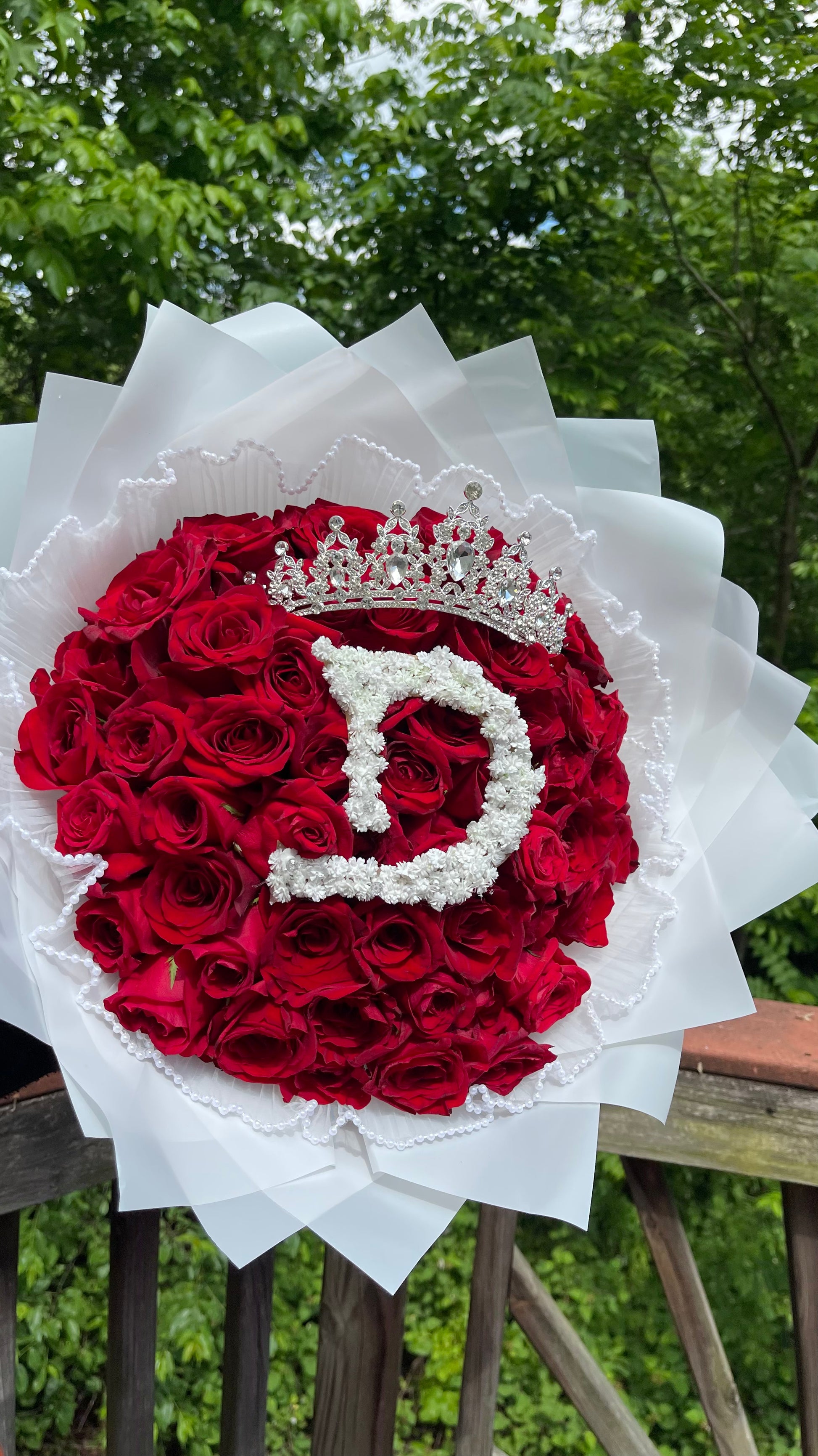 Make it personal, make it royal. Dear Dianna is a hand-crafted bouquet of premium red roses adorned with a custom baby’s breath initial and a crystal crown. It’s a luxury statement for birthdays, anniversaries, or anyone who deserves to be celebrated like royalty.