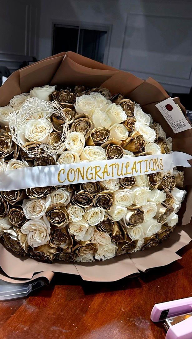 Golden Grace speaks the language of divine achievement. Cream and gold roses intertwine in a symphony of elegance, symbolizing success rooted in humility. Designed for the moments that remind you: what’s meant for you won’t miss you, and what blooms under grace will never fade.